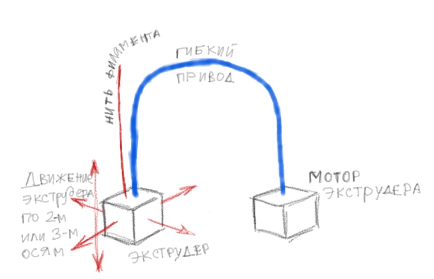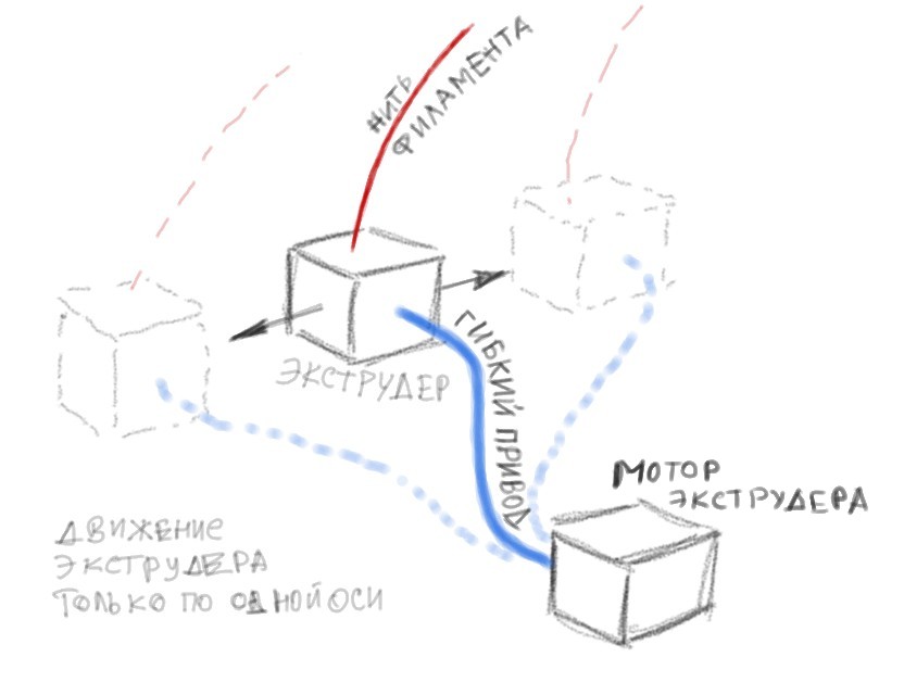 1. Экструдер движется только по X2. Экструдер движется по 2-м или 3-м осям