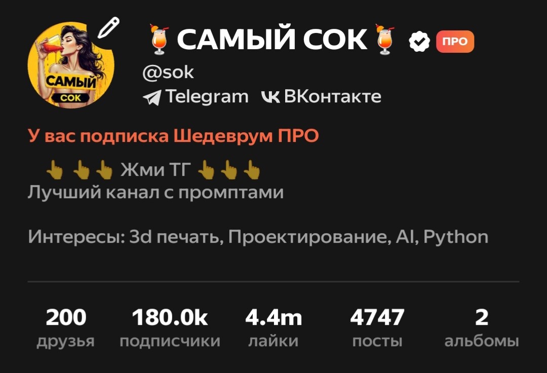 Для тех, кому интересны графические и не только нейросети, там рассказываем как установить локальную нейронку на свой ноут/пк, что прописывать чтобы получить тот или иной эффект на арте, а также перечислим множество полезных ИИ инструментов, успевайте не пропустить))