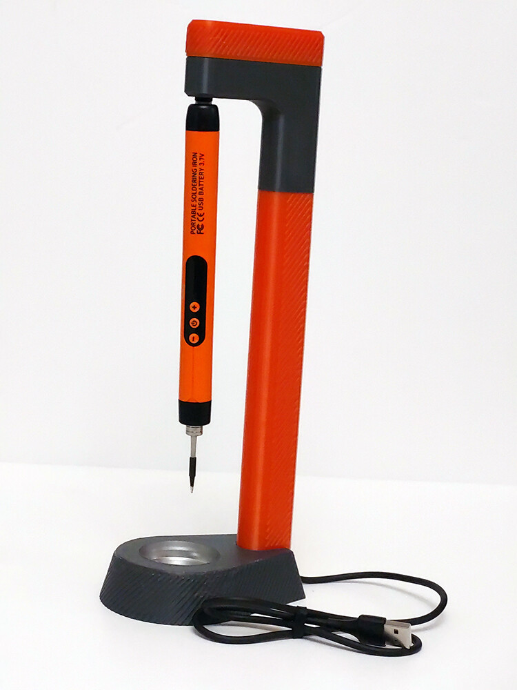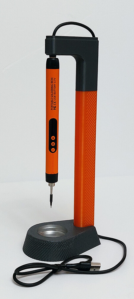 Теперь про зарядку, прикидывал разные варианты, конечно можно было ничего не придумывать, просто воткнул шнур и пусть заряжается. Но кто часто пользуется паяльниками наверняка попадали в ситуации когда случайно цепляешь чем либо провод паяльника и он летит на пол (хорошо если остывший).