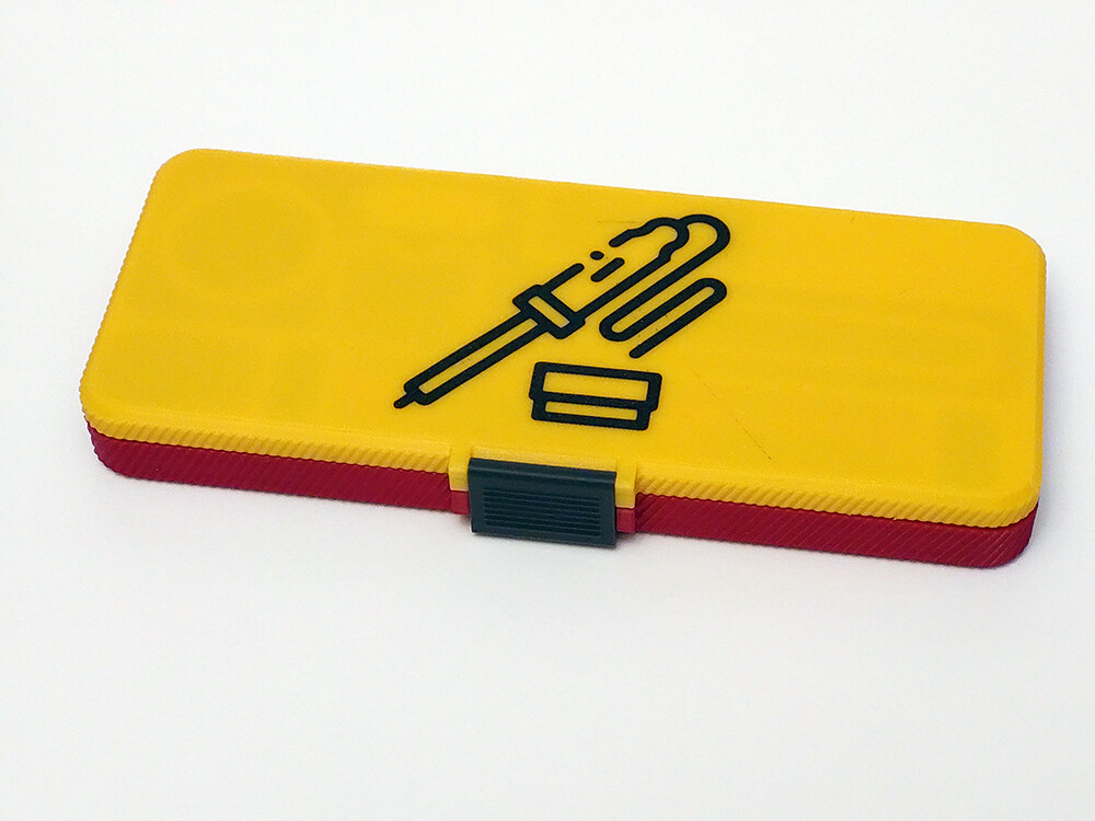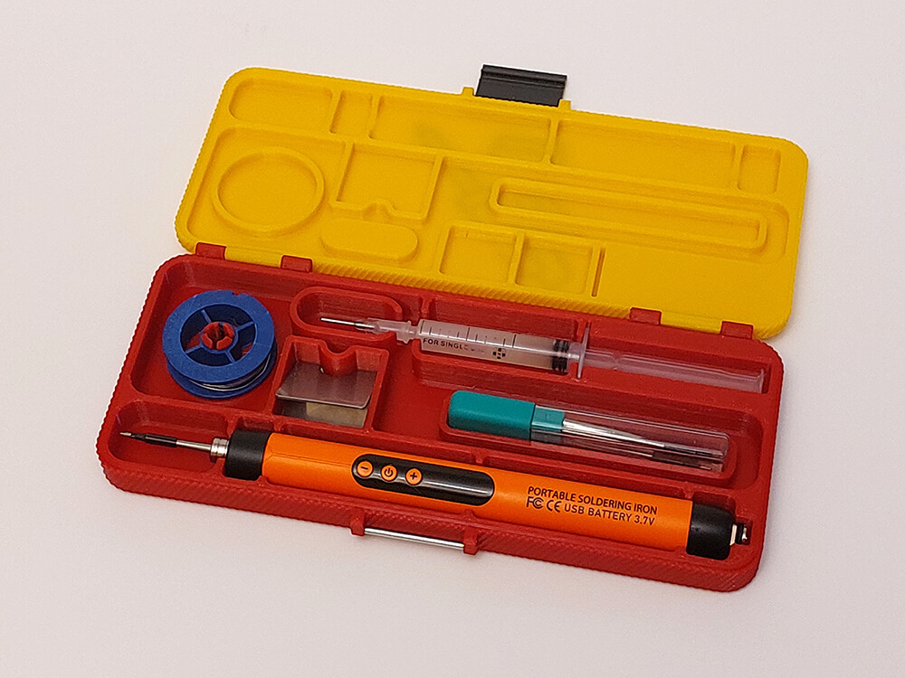 Печатаем свой кейс с необходимым наполнением, а именно, паяльник со вставленным в него жалом, шприц и пастообразным флюсом, другую подставку, припой и футляр со сменными жалами.