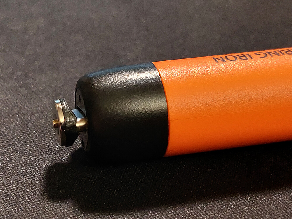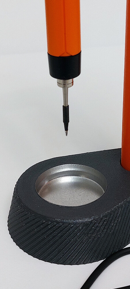 Было опасение что придётся делать направляющие либо ограничитель, чтоб попадать выводом паяльника в разъем зарядки, но этого не понадобилось, т.к. магнит оказался довольно мощным. Достаточно приблизить паяльник к магнитному разъему и он сам притягивает его. Удерживает тоже хорошо, даже при сильном наклоне штатива, паяльник не отцепляется от магнитного разъема.