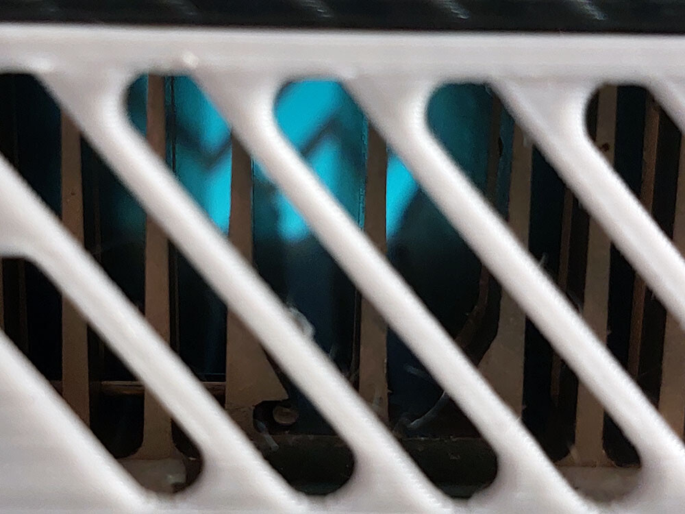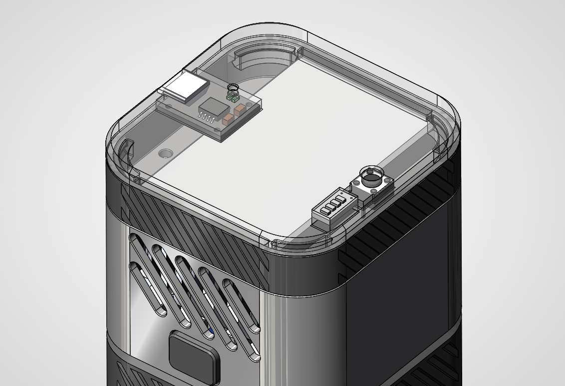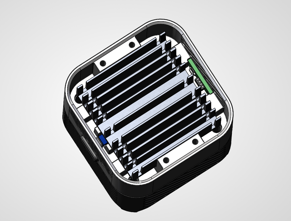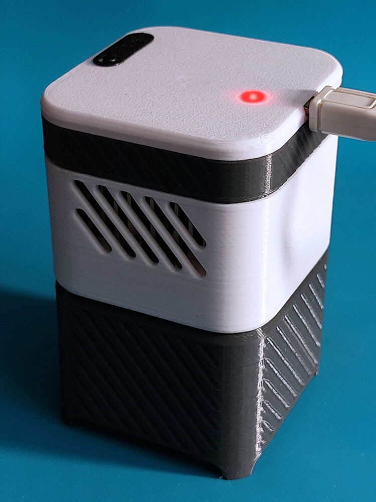 Для печати был выбран пластик Petg, двух цветов, особых настроек для печати не требовалось, всё печаталось соплом 0,4мм без использования поддержек, с высотой слоя 0,24мм. Изначально предполагалось что под светодиоды индикации не будут делаться отверстия, через белый пластик они и так хорошо просвечивают. И если индикация зарядки смотрелась вполне неплохо, там всего два светодиода, красный - идёт заряд и зелёный - зарядка завершена, то для индикатора уровня заряда, это выглядело не очень. Поэтому позже, в крышке над индикатором уровня заряда, было вырезано сквозное отверстие и допечатана накладка черного цвета, с пазами под каждый светодиод.