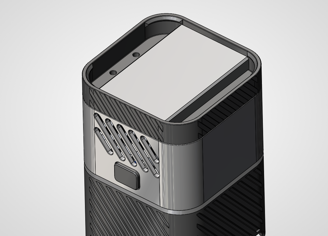 Все блоки (кроме верхнего) скрепляются винтовым соединением. Я вообще предпочитаю делать модель блочной. Это облегчает её печать и позволяет перепечатывать (при необходимости) без больших потерь пластика. Последней остается крышка, которая фиксируется на защёлки.