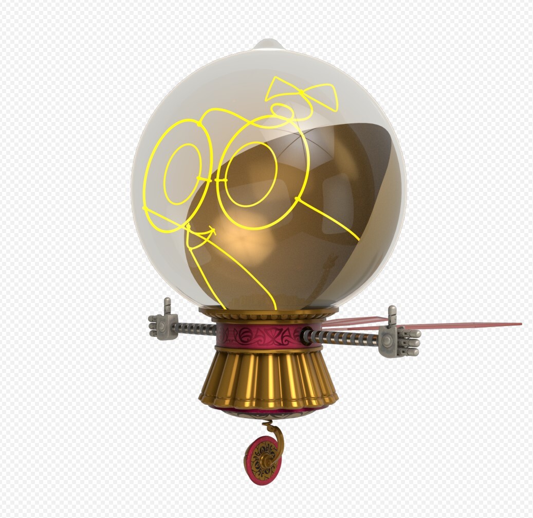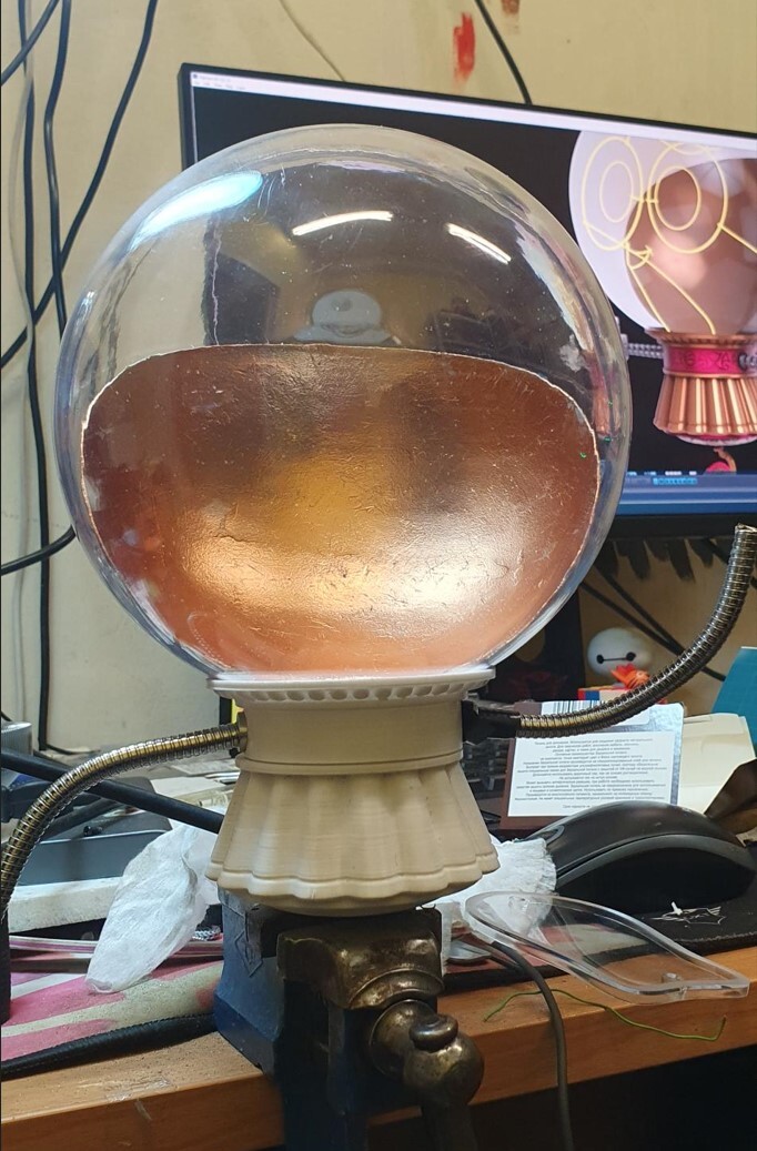 С помощью которого воссоздал "лицо" персонажа. Стеклянный плафон получилось заменить пластиковым шаром