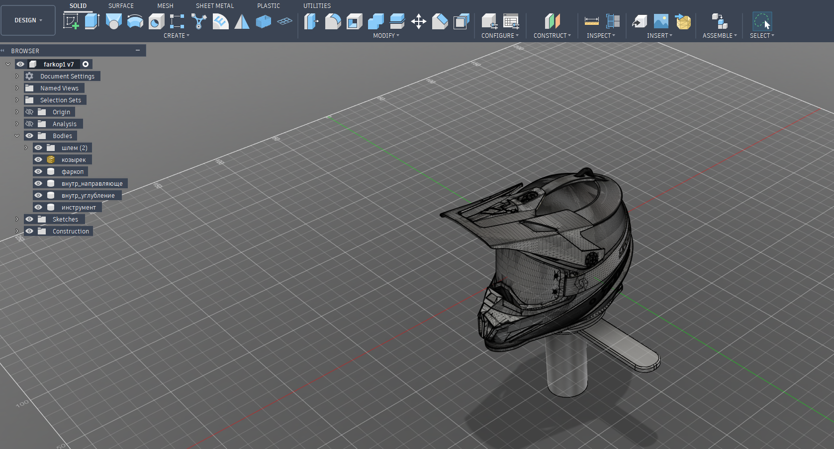 Идея проекта — создать насадку на шар фаркопа (50 мм) в форме эндуро-шлема, которая не просто надевается «внатяг», а фиксируется за счёт внутреннего механизма.