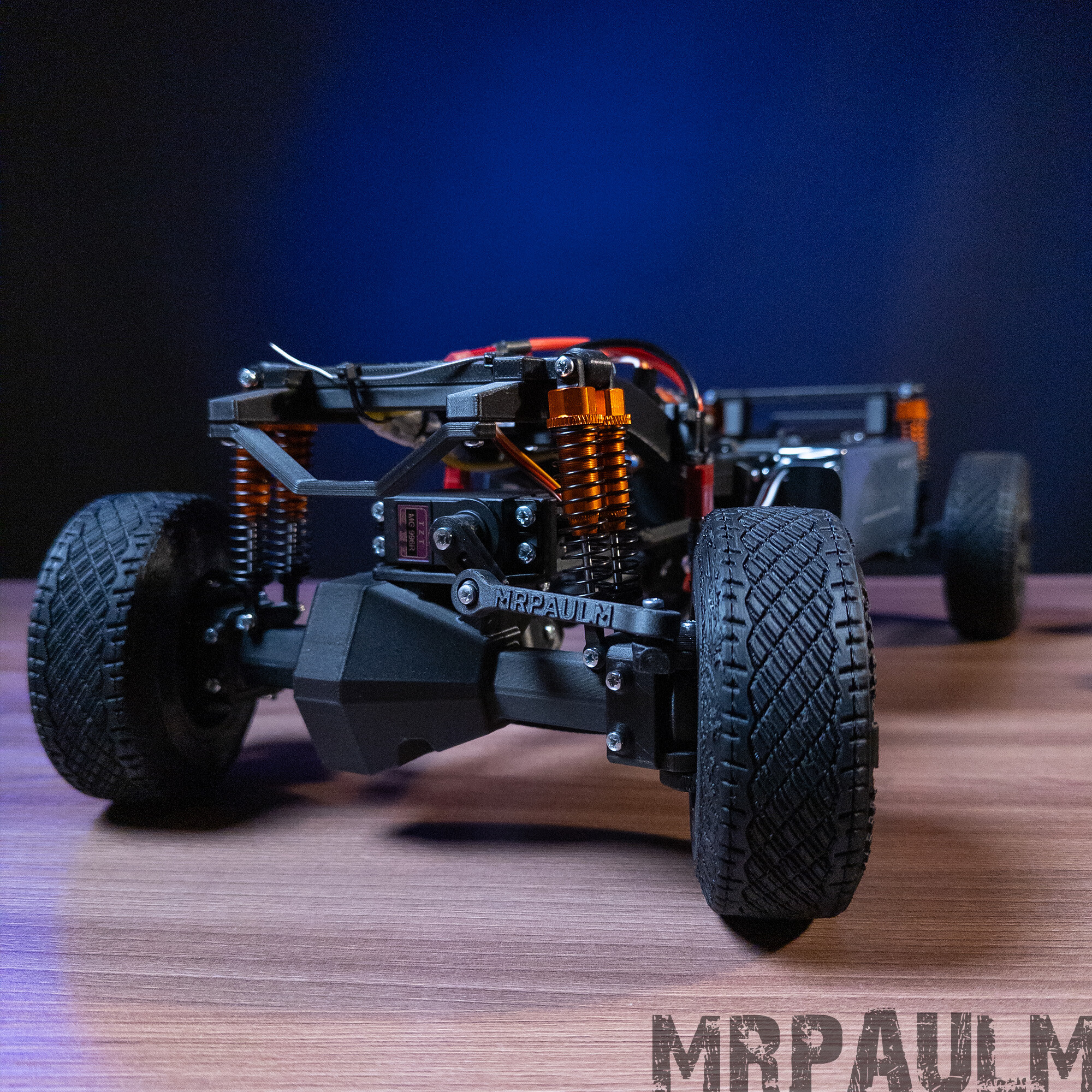 Шасси я сделал максимально простым в сборке и очень прочным: заблокированные дифференциалы, толстые полуоси и валы, прочные шестерни и жёсткая конструкция, выдерживающая активную езду.