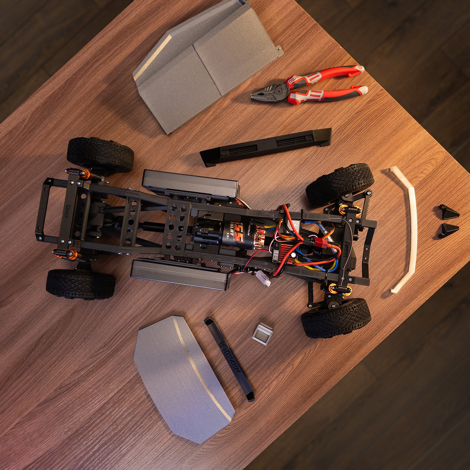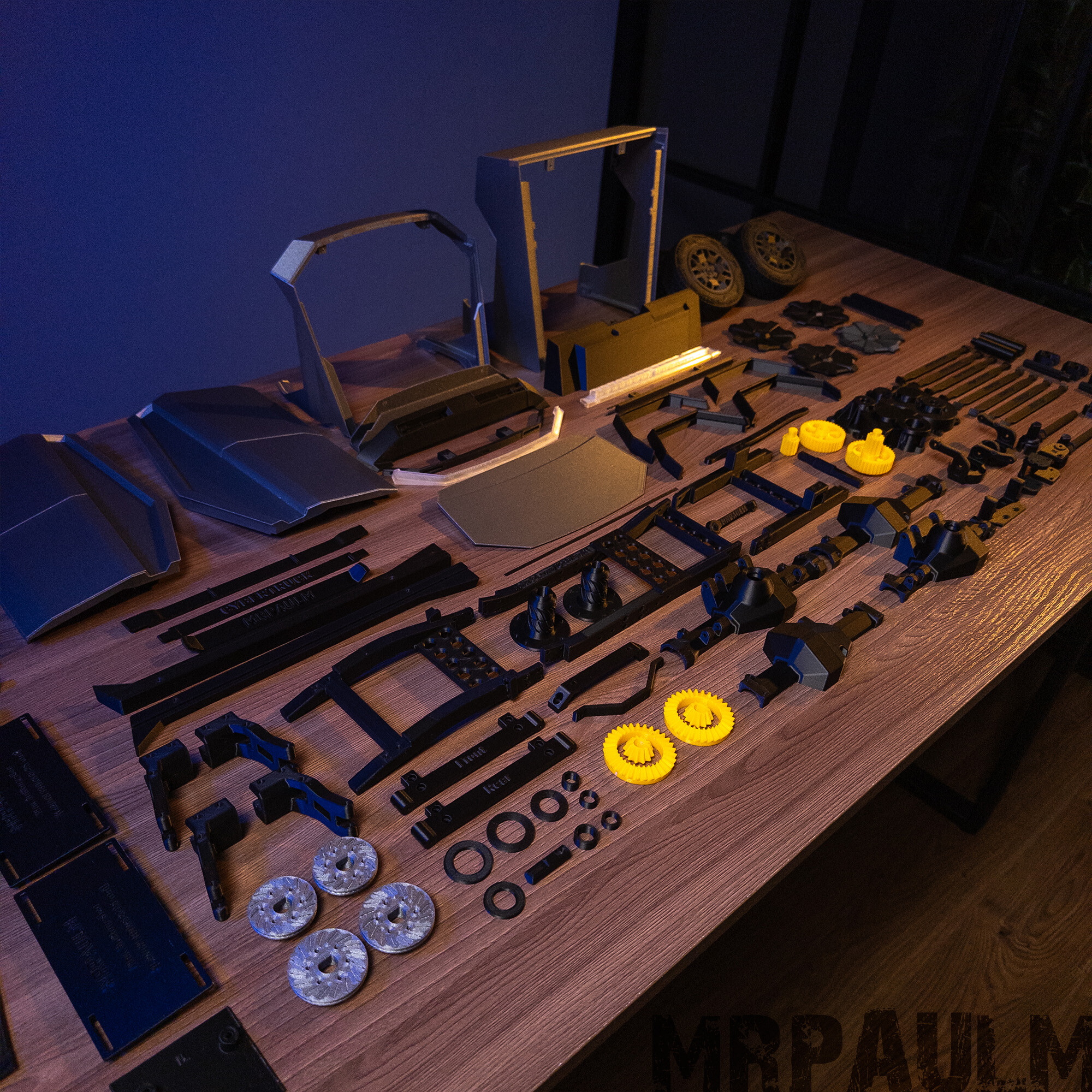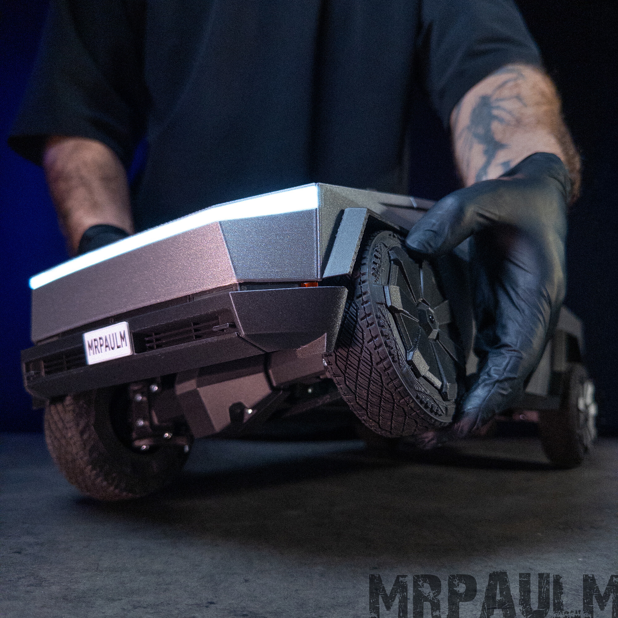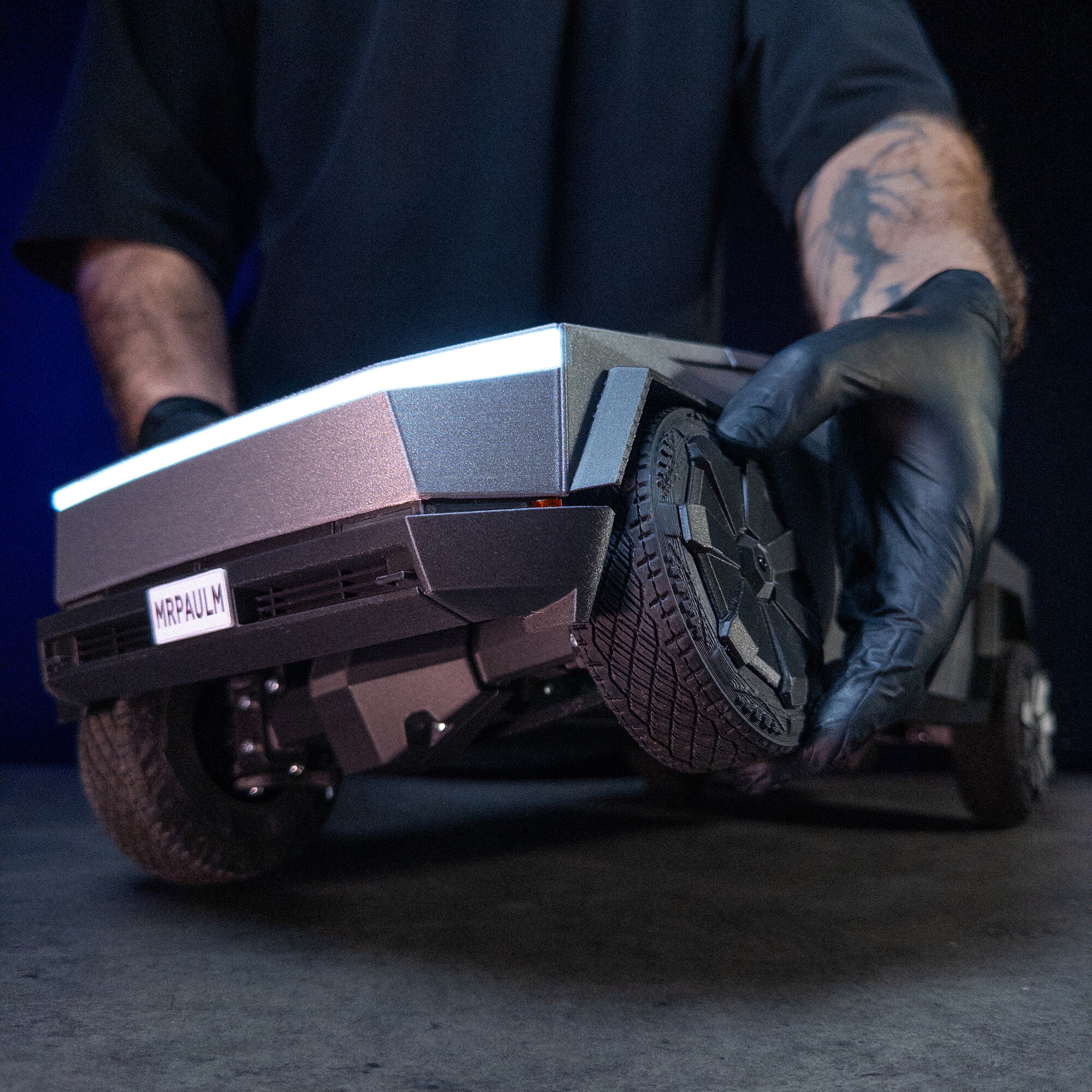 Спасибо, что дочитали до конца. Для меня этот проект стал возможностью совместить аккуратную геометрию кузова, функциональное освещение и прочную механику шасси в одном комплекте, полностью доступном для 3D-печати дома. Шасси универсальное — его можно использовать не только с кузовом Cybertruck, но и с моим кузовом Ford F-150 Raptor.