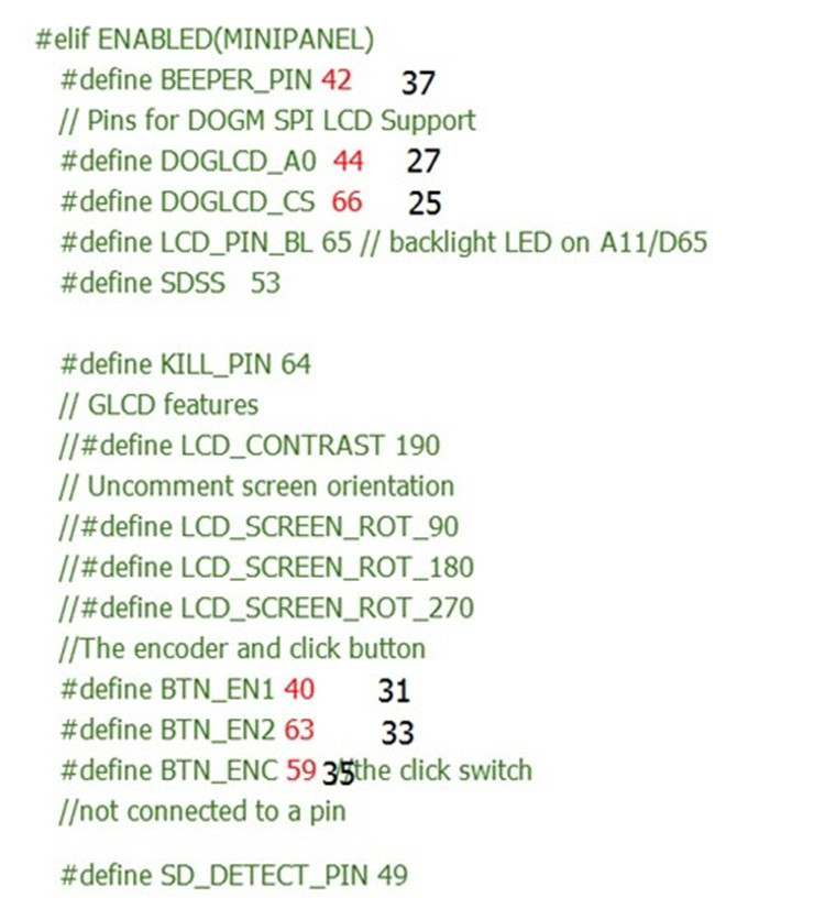 а теперь открываем файл pins_RAMPS.h и в секции, как на картинке, исправляем на черные циферки:
