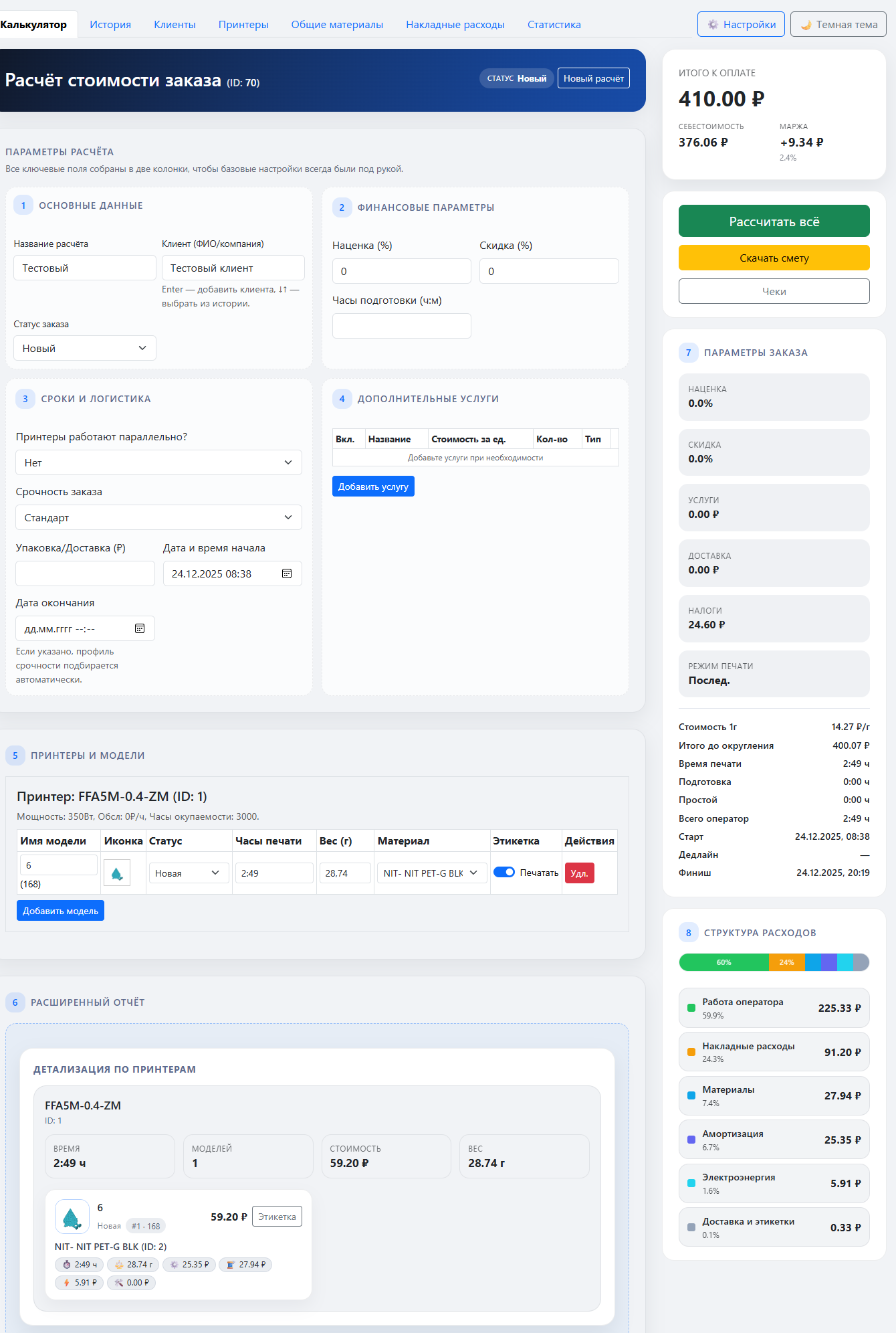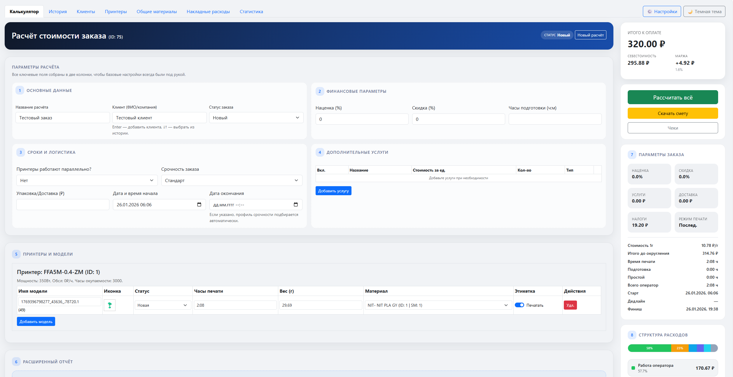 Считаем смету на 3D печать: калькулятор расчета стоимости печати с расширенным функционалом.