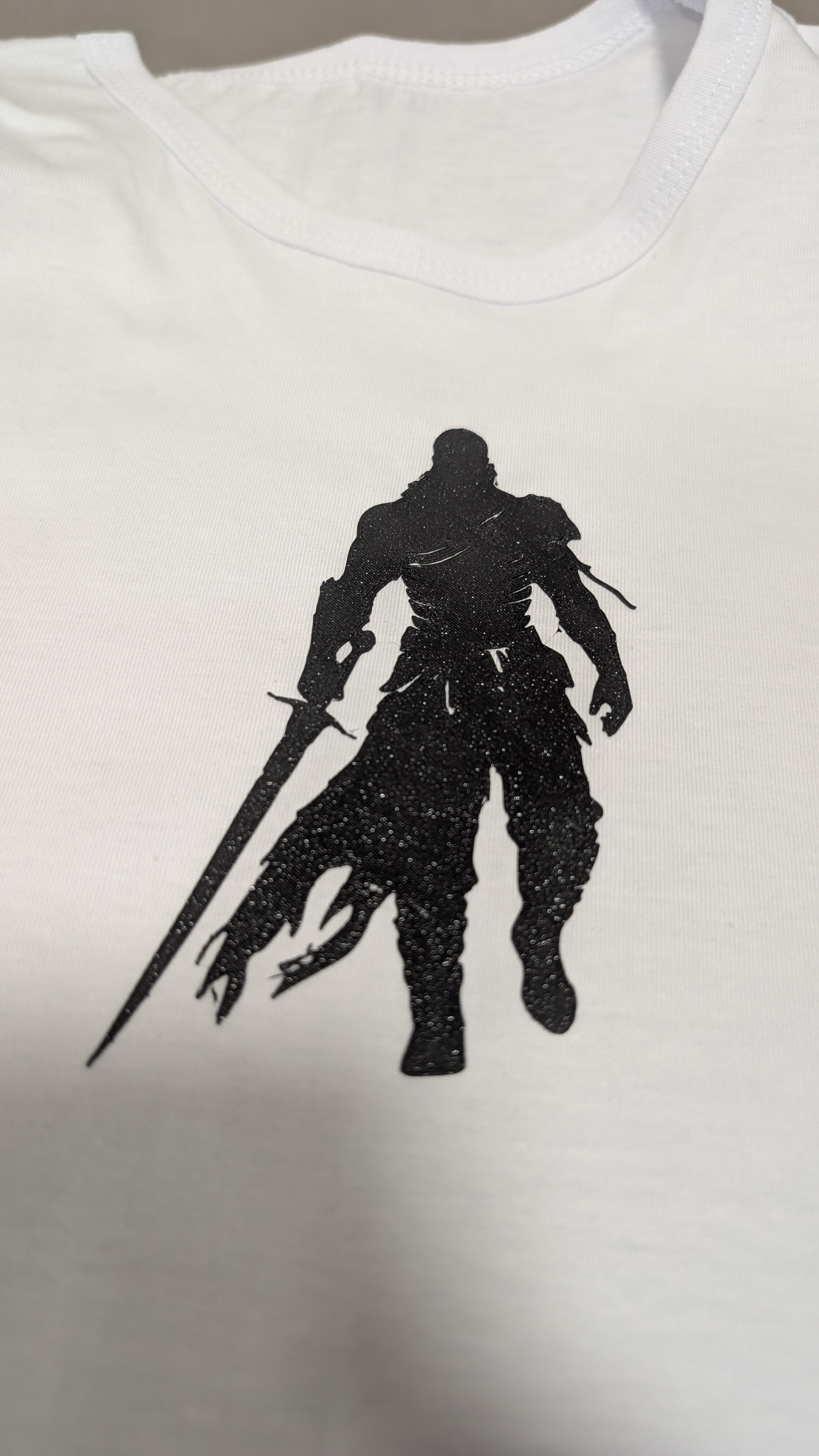 Отдельно благодарю, хоть и просил не делать этого))) @sher_tj - его рекомендация в точку!!! Сделал потом сыну на белой футболке уже чёрным пластиком. От того же ERYONE. Обратил внимание что он и со стола снимается на порядок легче, и припаивается с первого раза - более управляемей что ли. И саму аппликацию нанёс уже как он мне советовал - вывернул футболку наизнанку. Модель на ткань. Между тканями лист пергамента.