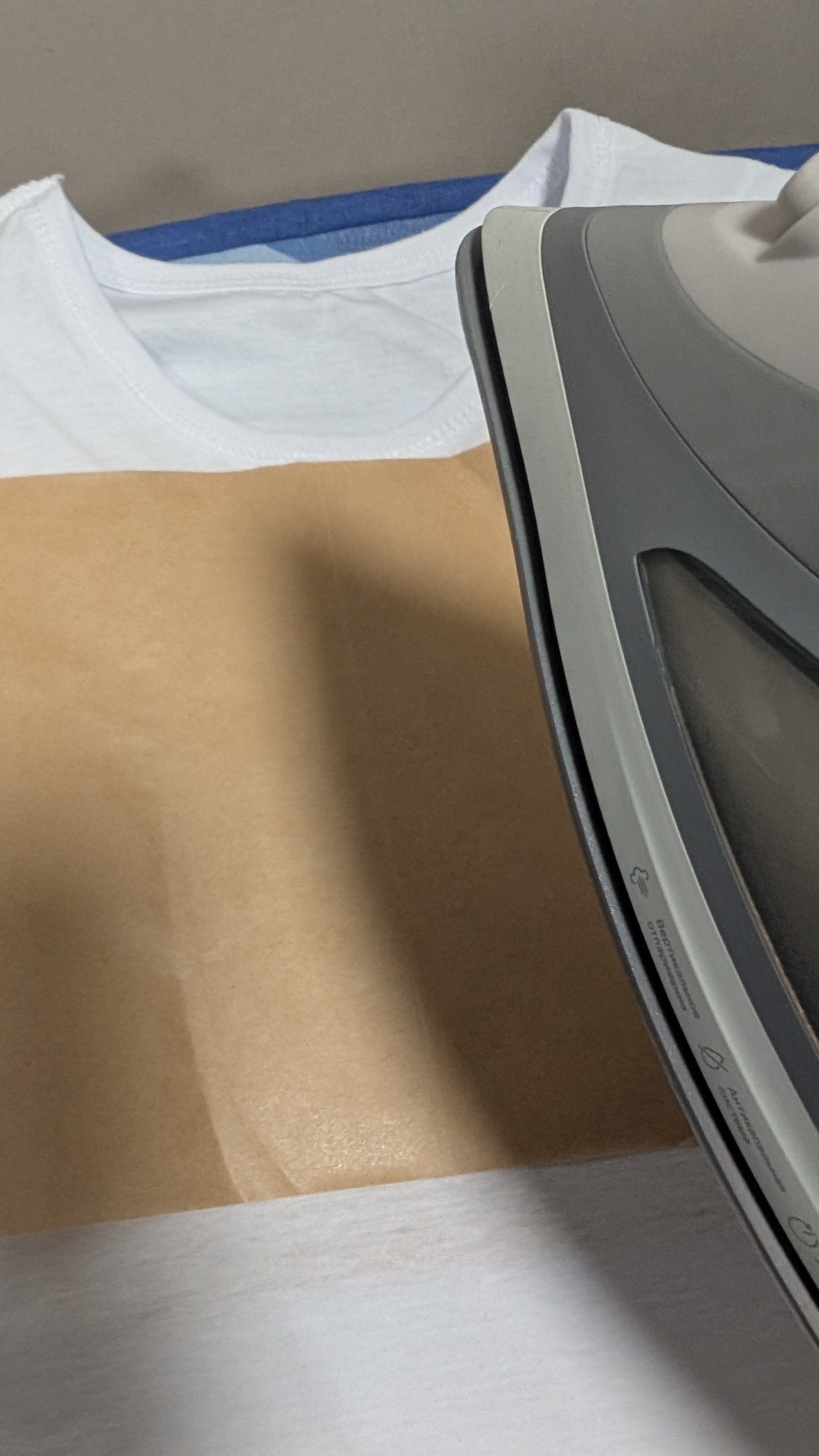 Сверху ещё лист пергамента. И уже потом приложил утюгом.