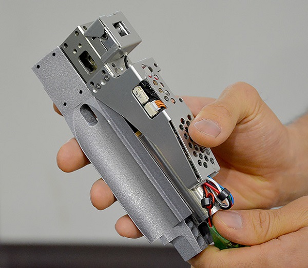 Скелет изготовлен с помощью аддитивных технологий, а именно селективного лазерного спекания металлических порошков. Пористость таких изделий давно служит предметом споров о прочности готовых изделий, но в данном случае именно намеренно низкая плотность сыграла ключевую роль в успешной реализации задумки. Скелет играет роль теплообменника, отбирая тепло у нагревающихся моторов и электроники. Участки несущей конструкции вокруг разогретых элементов пропитываются водой, испаряющейся и уносящей избыточную энергию. Другими словами, робот потеет подобно настоящему человеку.