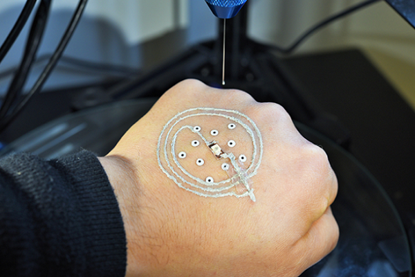 Предыдущий эксперимент заключался в 3D-печати электроники поверх кожи (