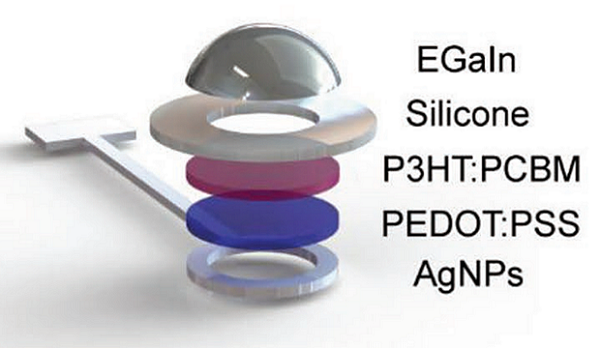 Продемонстрированное устройство состоит из прозрачной полусферы, покрытой изнутри пленкой из полиэтилентерефталата (ПЭТ). Поверх пленки исследователи напечатали массив фотодетекторов, каждый из которых состоит из пяти слоев – токопроводящих чернил на основе серебра, затем анода из прозрачной и гибкой токопроводящей полимерной смеси PEDOT: PSS, фотоактивной полимерной смеси P3HT:PCBM, изолирующего силиконового слоя и катода из жидкого галлий-индиевого сплава. Эффективность прототипа удивила самих разработчиков: отношение фототока на внешних выводах к числу падающих фотонов достигает 25,3%. Само собой, прототип весьма примитивен, однако команда намеревается продолжить эксперименты с использованием гибких и биосовместимых субстратов в сторону увеличения количества элементов в массиве и, если все получится, создания первого настоящего функционального протеза глаза. Доклад научной команды опубликован по