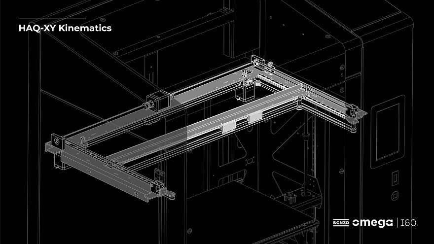 3D-принтеры Omega I60 задуманы как универсальные экструзионные аддитивные системы промышленного класса, способные работать с широким спектром полимерных и композиционных материалов. Как и другие 3D-принтеры под этим брендом, Omega I60 использует IDEX — систему независимого позиционирования головок по оси X, позволяющую удваивать производительность за счет одновременной 3D-печати двух идентичных или взаимно симметричных, «зеркальных» изделий. В новом 3D-принтере реализована модернизированная версия IDEX с кинематикой Haq XY: моторы привода по оси X закреплены неподвижно, а расположение шкивов изменено в сторону снижения нагрузок.