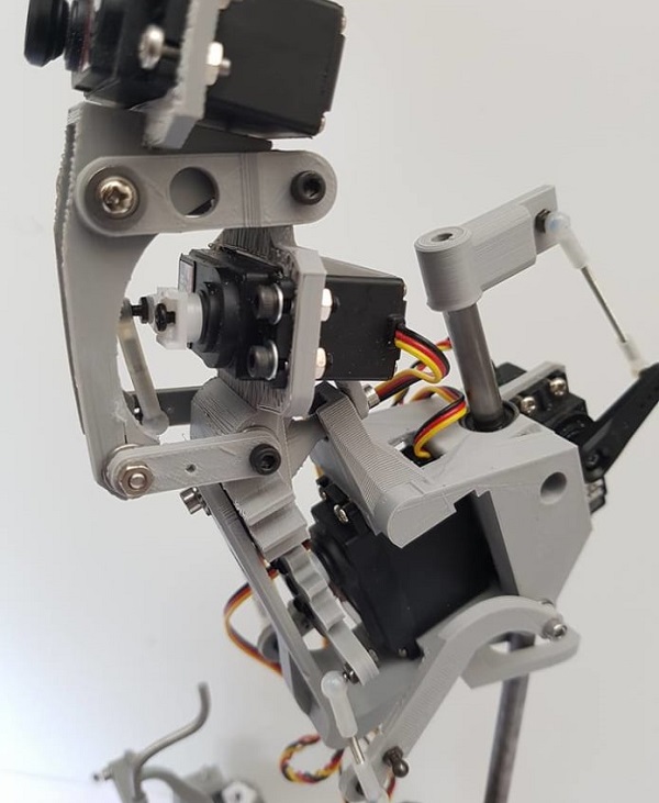 «Болтливость» попугаев, кстати, обусловлена краниальным кинезом, то есть подвижностью лицевых костей черепа, за счет чего эти птицы могут имитировать множество звуков, включая человеческую речь. 3D-печатная версия птички тоже отличается немалой подвижностью: полностью управляемой головой с работающими веками и подвижным в двух плоскостях клювом, способностью говорить, да еще и двигаясь в такт, и даже бегать бочком по шестку с помощью адаптированного механизма Хойкена.