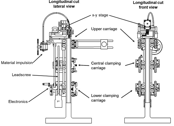 А вот инженеры из одной маленькой, но гордой латиноамериканской страны решили вернуться к концепции RepRap, но с одним интересным поворотом. Как хорошо известно энтузиастам, на 3D-принтере можно напечатать 3D-принтер, хоть и не целиком. А почему бы не делать это прямо во время производственного процесса? Так появилась идея 3D-принтера Koala, печатающего вертикальную направляющую и карабкающегося по оной подобно пушистому сумчатому зверьку. Получается, что Koala может печатать только направляющие? Не совсем. Опорная конструкция печатается пустотелой и служит оболочкой для требуемых изделий, печатаемых внутри колонны.