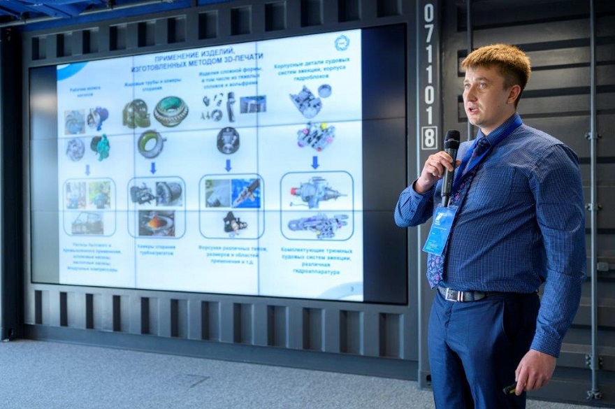 Начальник исследовательской лаборатории АО «Полема» Михаил Панин подробно рассказал о результатах испытаний 3D-изделий, напечатанных из металлического порошка производства «Полема», и о ближайших планах предприятия по разработке импортозамещающих продуктов.