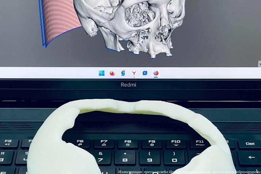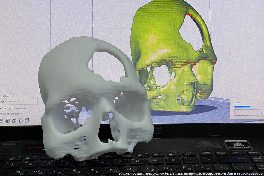 «Данные, полученные после реконструкции исследования с компьютерного томографа, открываются в специальном программном обеспечении. Сначала удаляются все лишние анатомические фрагменты и выделяется необходимая область костных структур. Этот целевой сегмент в дальнейшем подготавливается для 3D-печати. Поскольку печать объемных деталей в воздухе невозможна, она производится на специальных древовидных поддержках, что обеспечивает максимальное качество поверхности органических форм. Напечатать можно абсолютно любые фрагменты черепа или других костных структур, любой формы и сложности, в натуральную величину, с высокой точностью в пятьдесят микрон», — рассказал ведущий инженер отдела по ремонту и обслуживанию медицинского оборудования Центра травматологии Евгений Зеленин.