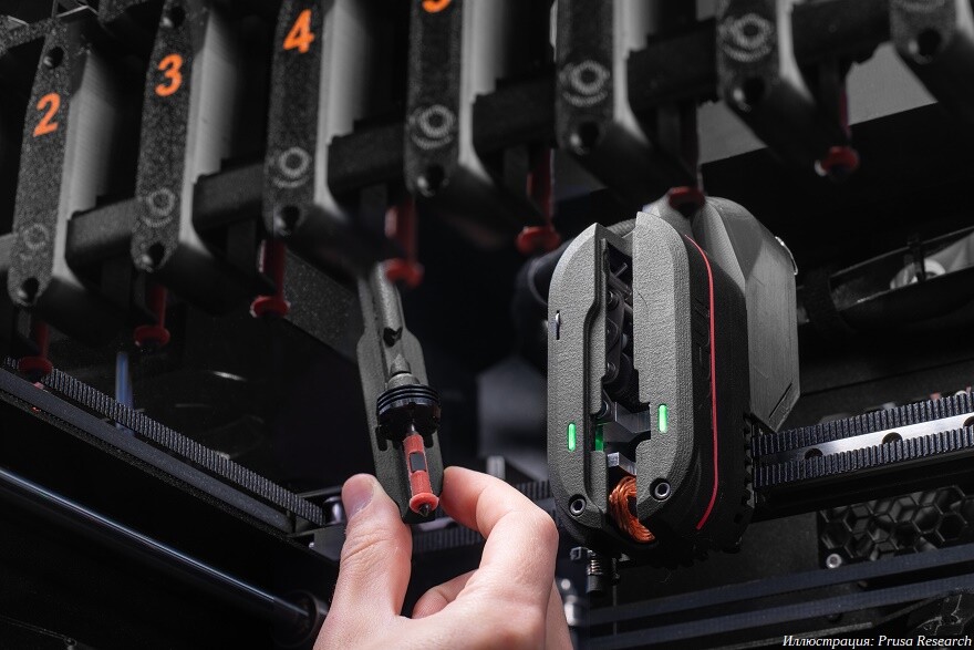 Новый тренд в сегменте настольных экструзионных 3D-принтеров — системы автоматической смены инструмента, то есть тулченджеры. Системы автоматической смены филамента первоначально развивались именно компанией Prusa Research, хотя и популяризированы компанией Bambu Lab, но при всем своем потенциале имеют серьезные недостатки, выраженные повышенным расходом материалов и значительными временными затратами на смену филаментов, включая выгрузку, загрузку, а затем прочистку хотэнда во избежание смешивания оттенков или разных материалов. Тулченджеры, с другой стороны, тоже позволяют работать с несколькими материалами, но с более быстрыми переходами с филамента на филамент и без больших объемов отходов.