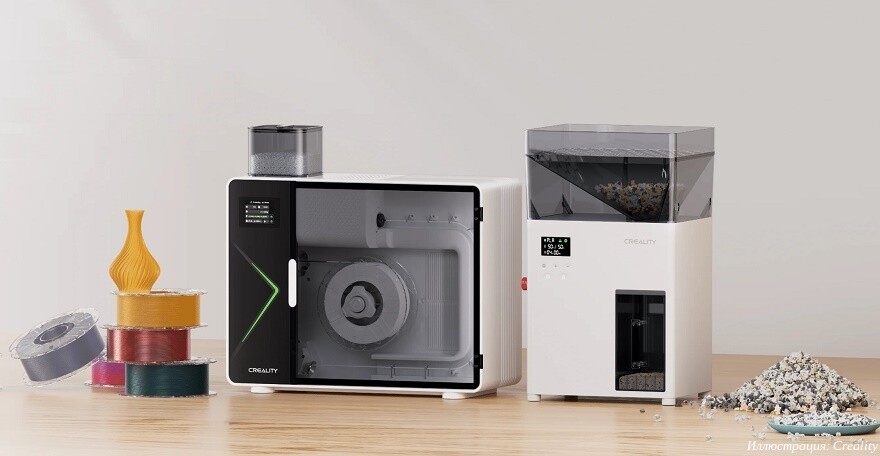 Комплекс из двух устройств позволит измельчать и просушивать пластиковые отходы, либо использовать первичные грануляты, и изготавливать филаменты для 3D-принтеров с производительностью до одного килограмма в час — около одной стандартной катушки.