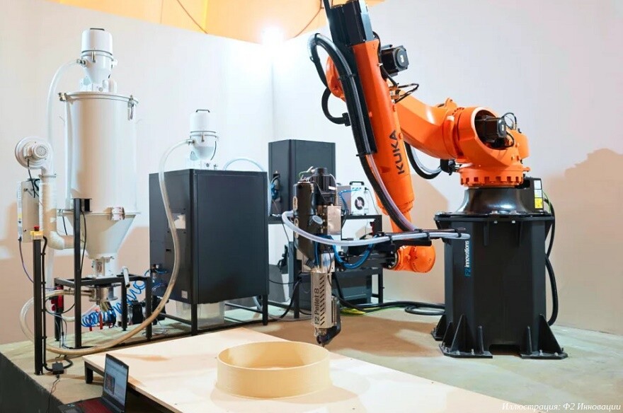 Также на стенде будет представлена промышленная система 3D-печати на основе робота KUKA с отечественной системой управления и шнековым экструдером собственной разработки F2 Pellet 8. Экструдер обеспечивает производительность до 10 кг/ч и позволяет изготавливать крупногабаритные изделия, прототипы и технологическую оснастку из гранулированных полимеров и композитов. Роботизированная кинематика обеспечивает большую рабочую зону и возможность 3D-печати изделий высотой более трех метров при компактных габаритах самой установки.