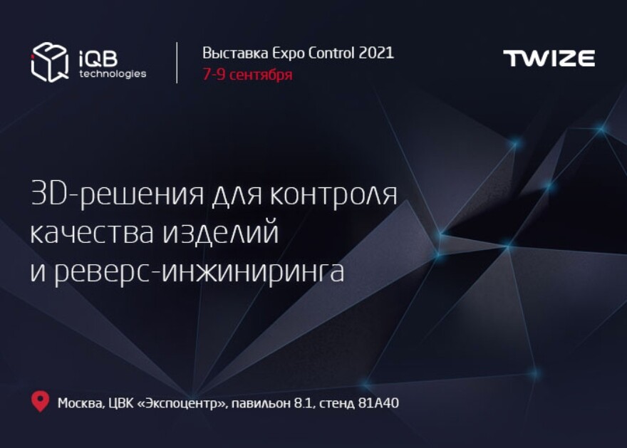Хотите своими глазами увидеть в действии 3D-сканеры для метрологии? Тогда приходите на совместный стенд iQB Technologies и TWIZE на выставке Expo Control 2021 в московском ЦВК «Экспоцентр».
