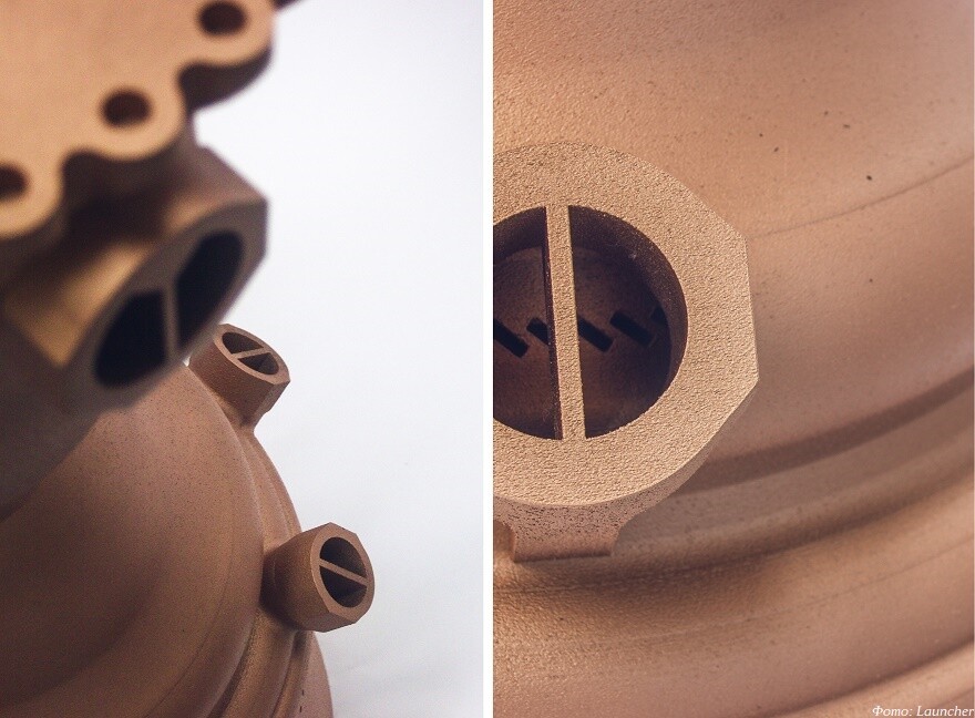 Камера сгорания напечатана одной деталью из медного сплава по технологии селективного лазерного спекания на 3D-принтере AMCM M 4K с областью построения размером 450x450x1000 мм и возможностью установки до четырех излучателей мощностью 1 кВт каждый. Эта аддитивная система сконструирована по заказу Launcher специально для 3D-печати медными сплавами, хотя способна работать и c другими металлопорошковыми композициями, например алюминиевыми сплавами.
