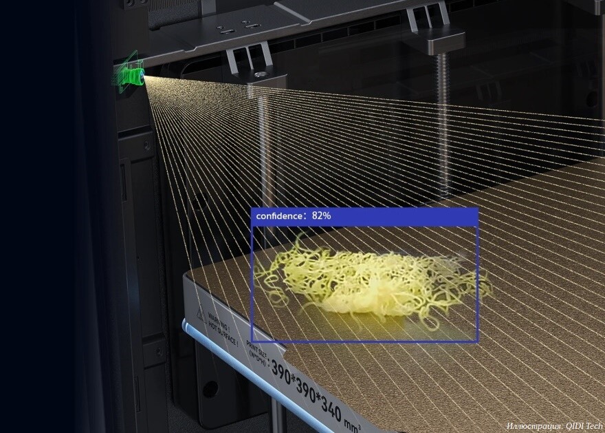 Видеокамера с высоким разрешением и машинным зрением позволяет отслеживать в режиме реального времени различные сбои, например «вермишель» или ошибки в построении опорных структур. Обнаружив возможный сбой, система автоматически приостанавливает 3D-печать и отправляет уведомление. Увеличенный сенсорный дисплей получил обновленный пользовательский интерфейс и отличается повышенной отзывчивостью ввода.