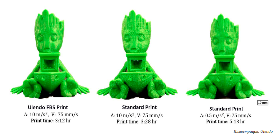 Стартап Ulendo, образованный на базе Мичиганского университета, представил программное обеспечение, повышающее практическую скорость FDM/FFF 3D-принтеров. Суть разработанных алгоритмов в динамической компенсации вибраций, возникающих при 3D-печати на высоких скоростях.