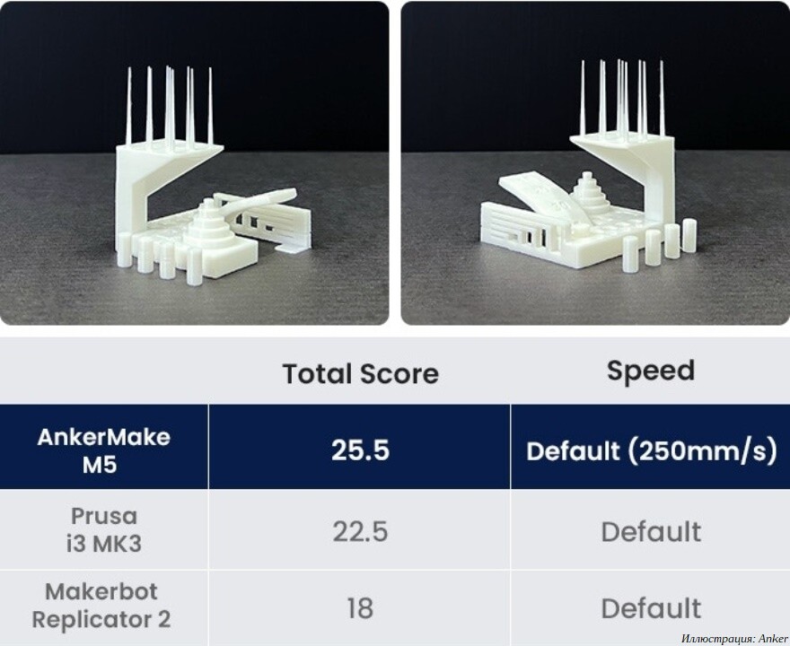 Стандартный тест Kickstarter на качество 3D-печати AnkerMake M5 выполнил на ура, набрав 25,5 баллов из тридцати возможных и тем самым побив результат Original Prusa i3 MK3. Как же так, Йозеф?