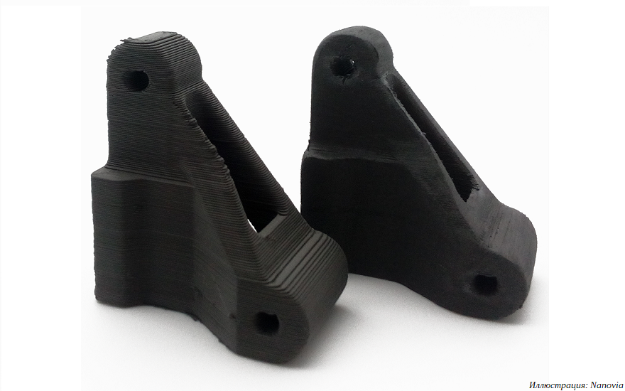 Новые материалы получили названия Nanovia Mt и Nanovia Cr. Первый — полимер-металлический филамент с наполнителем из порошка нержавеющей стали марки 316L. Во втором наполнителем служит порошок карбида кремния — чрезвычайно твердого материала с высокой температурой плавления (свыше 2700°С), применяемого в качестве абразива и в производстве износостойких деталей.