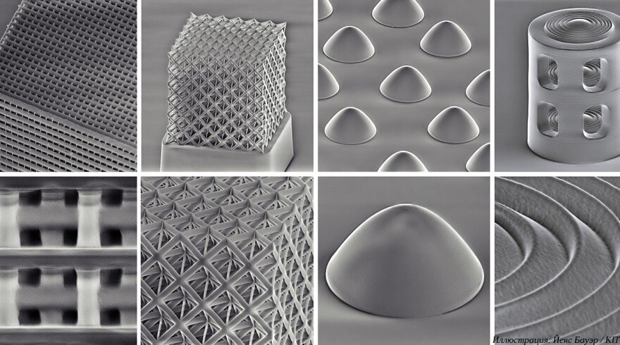 Исследователи из Технологического института Карлсруэ (KIT) разработали метод 3D-печати структур из кварцевого стекла в нанометровых масштабах прямо на полупроводниковых чипах. Процесс проходит при достаточно низких температурах, так как не требует спекания, а разрешение достаточно велико для применения в нанофотонике.