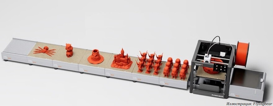 Китайский производитель аддитивного оборудования Flyingbear выпустил 3D-принтер Ghost 7 и анонсировал два апгрейда — систему автоматической смены филаментов на пять катушек и систему автоматической смены столиков для конвейерной 3D-печати.