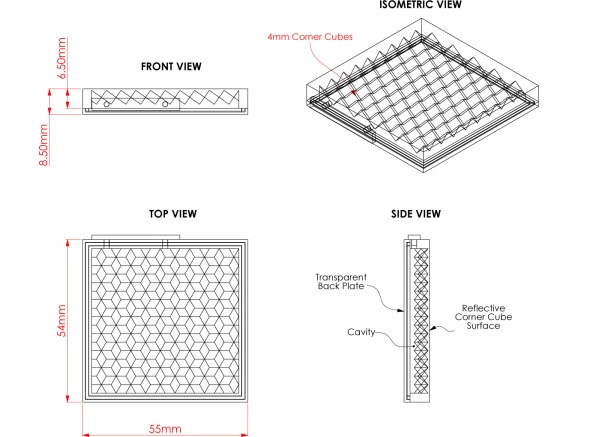 Конструкция довольно проста. Внутренняя структура состоит из светоотражающей пластиковой панели сложной формы, аналогичной строению автомобильных или велосипедных рефлекторов. Другими словами, свет не рассеивается, а отражается в обратном направлении. В нормальном состоянии конструкция отражает свет, но если внутренний объем заполнить прозрачной жидкостью с подходящими рефракционными свойствами, то стекло становится прозрачным. Тот факт что стекло отражает, а не поглощает излучение, позволит использовать новинку не только для регулировки яркости и обеспечения приватности, но и климатического контроля. Например, если из такого стекла изготавливать кровлю, то летом можно включить отражающий режим для борьбы с нагреванием, а зимой наоборот делать панели прозрачными для поглощения солнечного тепла.