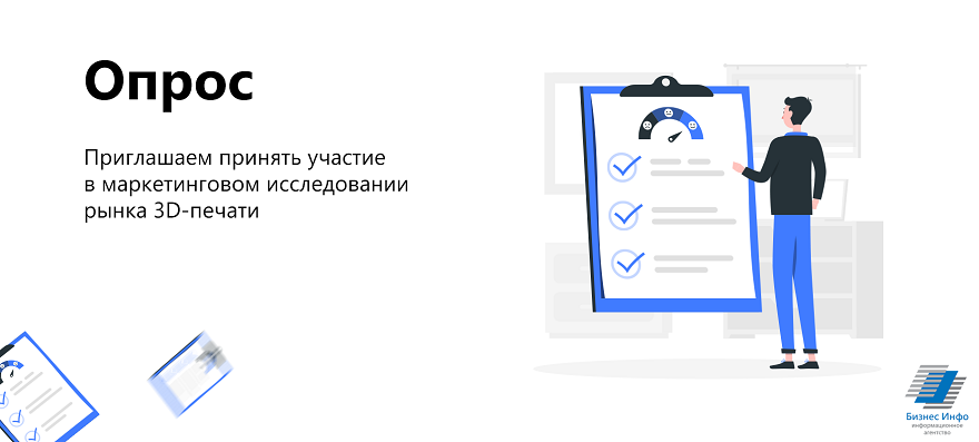 Информационное агентство «Бизнес-Инфо» в рамках маркетингового исследования рынка 3D-печати проводит опрос для формирования рейтинга потребительской лояльности к российским производителям 3D-принтеров.