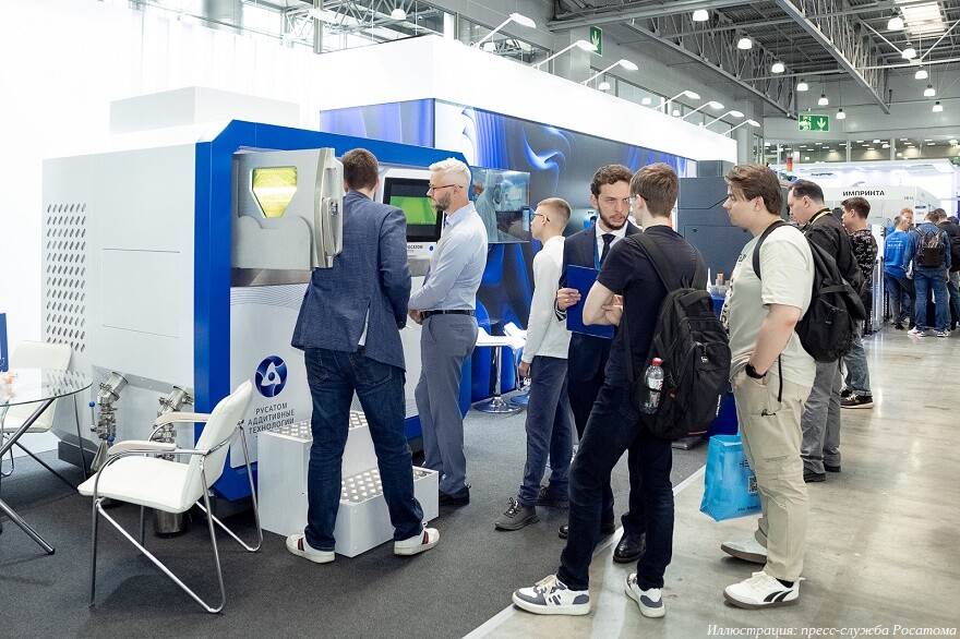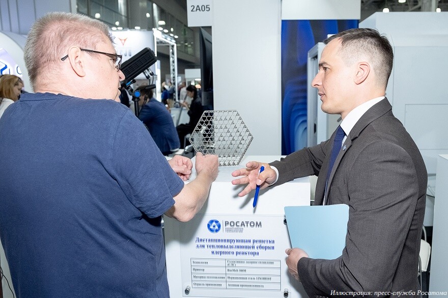 На стенде Росатома демонстрировался 3D-принтер Rusmelt 300М по технологии селективного лазерного сплавления металлопорошковых композиций (SLM), а также расходные материалы для 3D-печати, изготовленные на предприятиях атомной отрасли, и образцы 3D-печатной продукции — патрубки, импеллер, соединитель труб, цилиндр одноцилиндрового двигателя, дистанционирующую решетку тепловыделяющей сборки атомного реактора, и другие. Применение аддитивных технологий позволило сократить сроки производства, оптимизировать конструкцию и усовершенствовать функционально-эксплуатационные характеристики представленных деталей, сообщает пресс-служба Росатома.