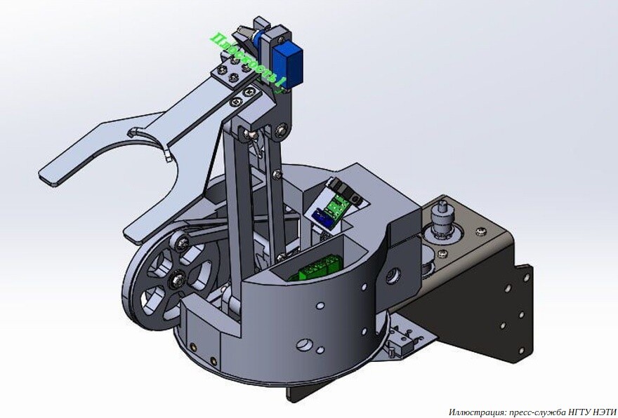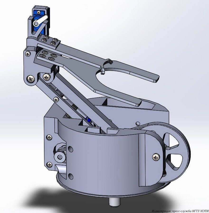 Корпус манипулятора выполнен из акрилонитрилбутадиенстирола (ABS) методом 3D-печати. Для повышения прочности, обеспечения оптимальной производительности и снижения общего веса кронштейн изготовлен из стали, а «лапки» манипулятора — из алюминия, сообщает пресс-служба вуза.