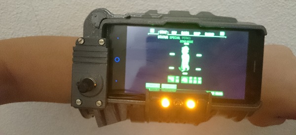 2. PipBoy Лучший друг обитателей постапокалиптического мира – наручный микрокомпьютер PipBoy. Модель выполнена Георгием Пугачевым, a.k.a. Heorhi. Оригинальный дизайн пришлось несколько видоизменить, чтобы подогнать под размер смартфона, а заодно были добавлены лампочки с переключателями. Как это делается, читайте здесь.