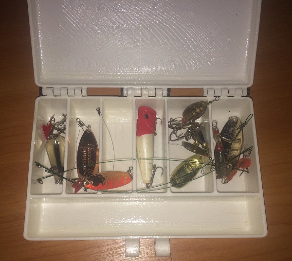 6. Контейнер для снастейРабота участника 3Dtoday под ником Fin. Удобный контейнер для хранения рыболовных снастей был смоделирован и напечатан по просьбе тестя. За высоким качеством мейкер не гнался из-за дефицита времени, но практичность изделия налицо. Короб изготовлен из ABS-пластика REC, на печать ушло одиннадцать часов. Подробности по этой ссылке.