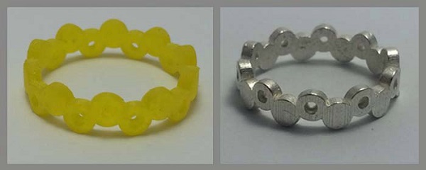 10. КольцоЮвелирная поделка от «Растишка 3D Принт». Модель выполнена на фотополимерном 3D-принтере B9Creator и использована для создания формы, по которой было отлито готовое серебряное колечко.