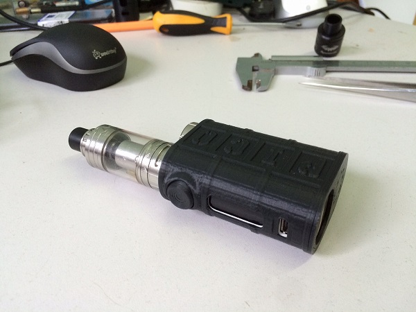 7. Чехол для электронной сигареты iStick Pico Для Михаила Гольтяева электронная сигарета Eleaf iStick Pico оказалась слишком компактной, а потому неудобной. Ситуацию было решено исправить с помощью 3D-печатного чехла. Аксессуар изготовлен из пластика ProPlast слоями в 200 микрон на 3D-принтере Prusa i3. Как это делается, читайте здесь, а модель можно найти по этой ссылке.
