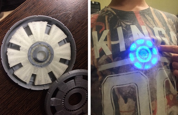 Дуговой реакторПока остальные косплееры работают над костюмами «Железного человека», Антон, a.k.a. Mr_Ustas, напечатал дуговой реактор! Кожух выполнен из ПЛА-пластика FL-33 Silver, а прозрачная ставка – из ПЛА производства RGT. Как это делается, смотрите в блоге Антона.