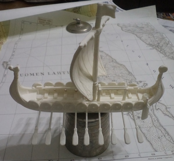 4. Норвежский драккар Ладья напечатана Александром, a.k.a. Kaban1941, из ПЛА-пластика слоями 0,2 мм и на скорости 200 мм/сек. Модель обработана наждачной бумагой и ожидает покраски. Подробности здесь.