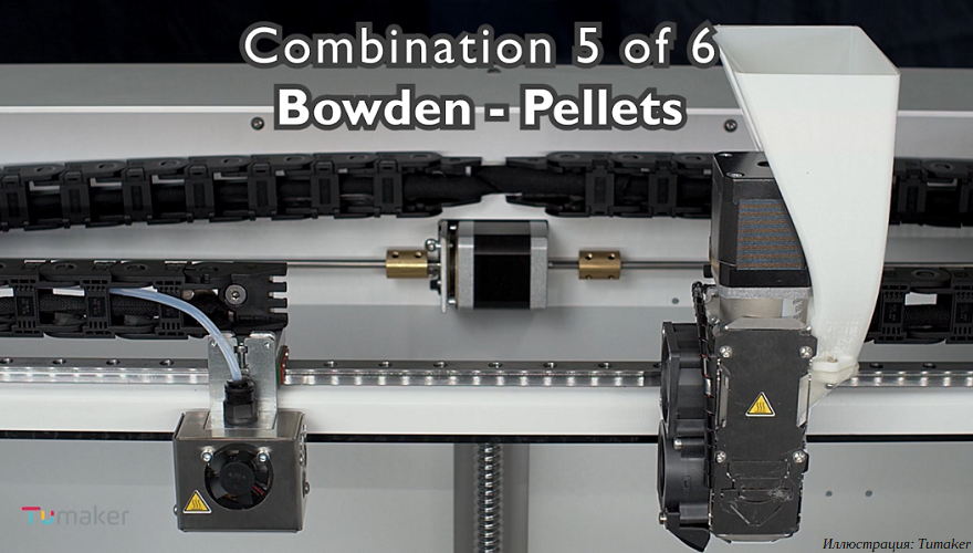 Главная особенность этих систем в том, что они позволяют комбинировать разные экструдеры. 3D-принтеры линейки Tumaker Pro Dual оснащаются двумя головками с выбором боуденовской или директ-подачи филамента для каждого экструдера, а также возможностью оснащения шнековыми экструдерами для работы с гранулированными материалами. Комбинация экструдеров может быть любой, всего шесть возможных вариантов. Прутковые экструдеры оснащаются датчиками филамента.
