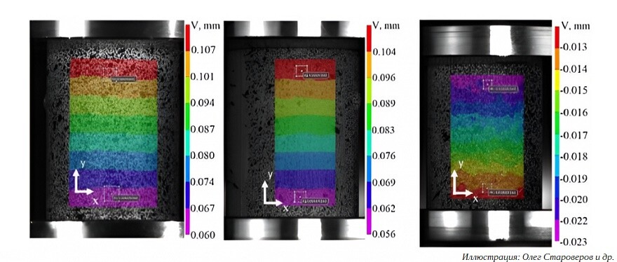 «Повышенные температуры привели к образованию трещин по всей поверхности образцов и снижению прочности на 20-25%, тогда как заморозка материала до -40°С, наоборот, увеличила его стойкость на 10-15%. Образцы не разрушились даже при максимальной нагрузке в десять тонн. Это связано с тем, что от нагрева полимерная основа материала размягчается, а от холода становится более жесткой», — рассказал доцент кафедры экспериментальной механики и конструкционного материаловедения ПНИПУ Олег Староверов.