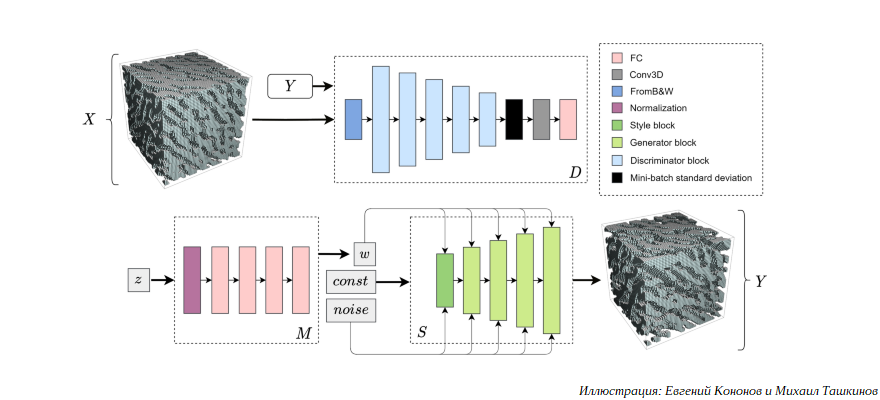 Ученые провели первичное обучение нейросети на библиотеке из пяти тысяч моделей пористых материалов — одних из самых сложных в проектировании. В процессе нейросеть проанализировала и усвоила фундаментальные принципы их построения — распределение твердых и пустотных областей, варианты соединения внутренних элементов и типичные особенности. Этот этап позволил искусственному интеллекту сформировать базовое понимание внутренней архитектуры образцов.
