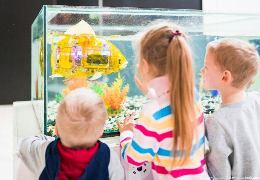 Еще один экспонат — южнокорейская роборыба с искусственным интеллектом, точно имитирующая движения живой рыбы. Такие роботы популярны в премиальных ресторанах Сеула. Дополнительно можно увидеть беспилотный Segway, робота-окномойщика, робота-кривляку, робота-официанта, и многие другие экспонаты.