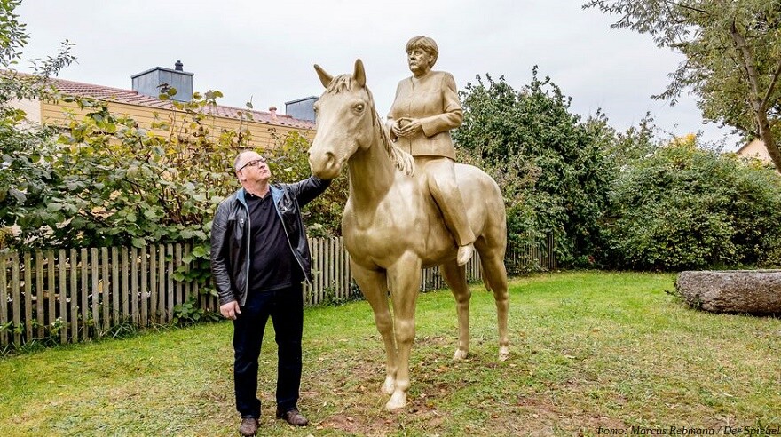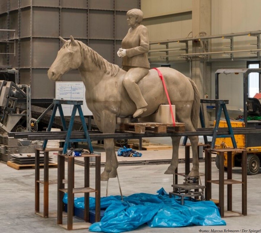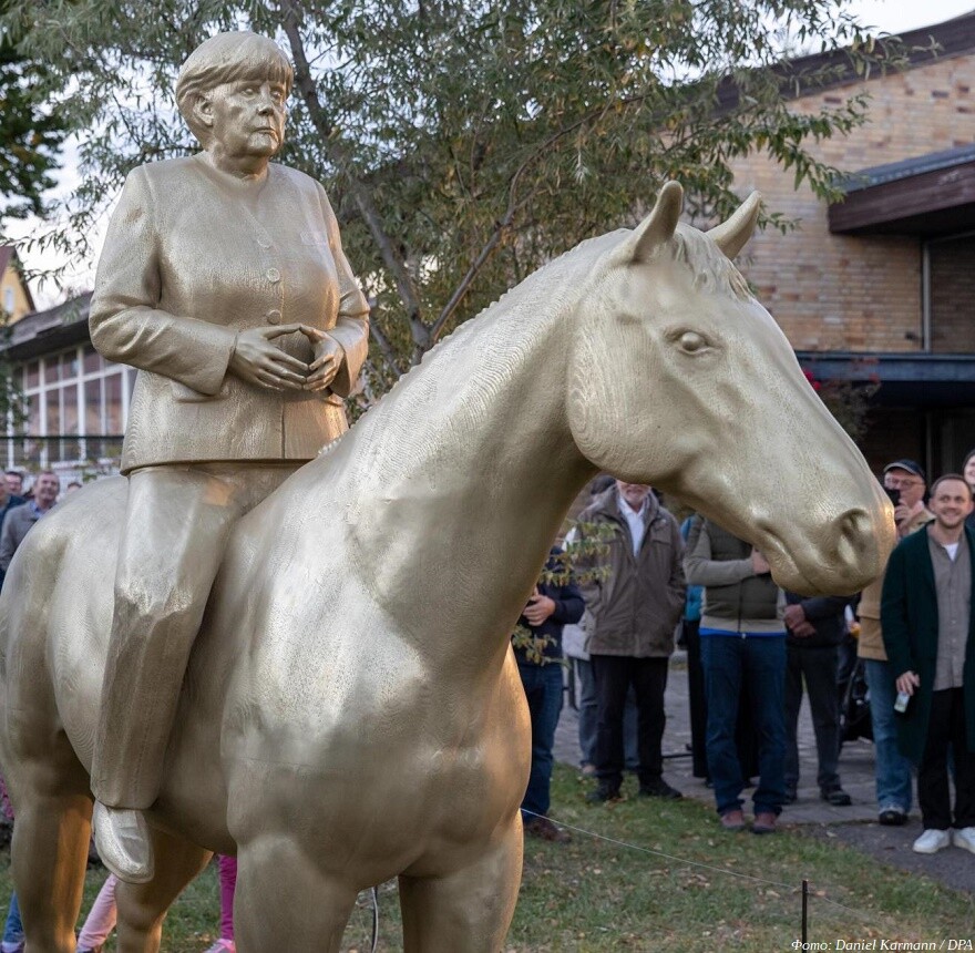 Верхом на коне и лицом на восток: в Баварии появился 3D-печатный памятник Ангеле Меркель