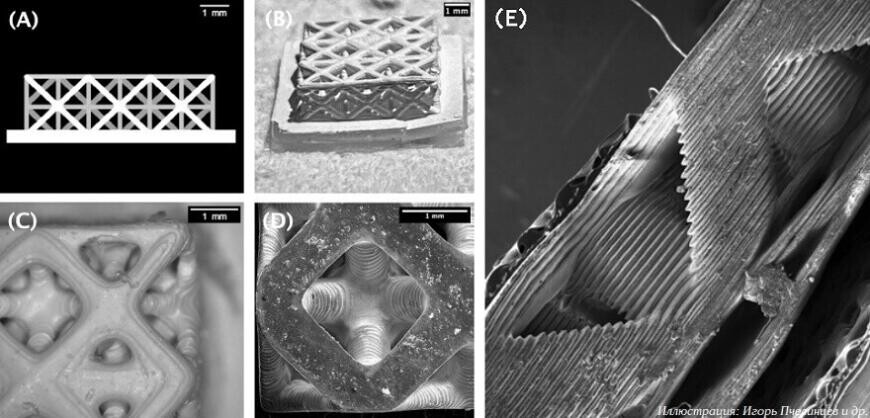 В 2023 году ученые Сколтеха продемонстрировали возможности технологии, напечатав керамические детали сложной решетчатой формы для топливных элементов. Геометрия иерархических решетчатых структур улучшает ионную проводимость и, как результат, повышает мощность.